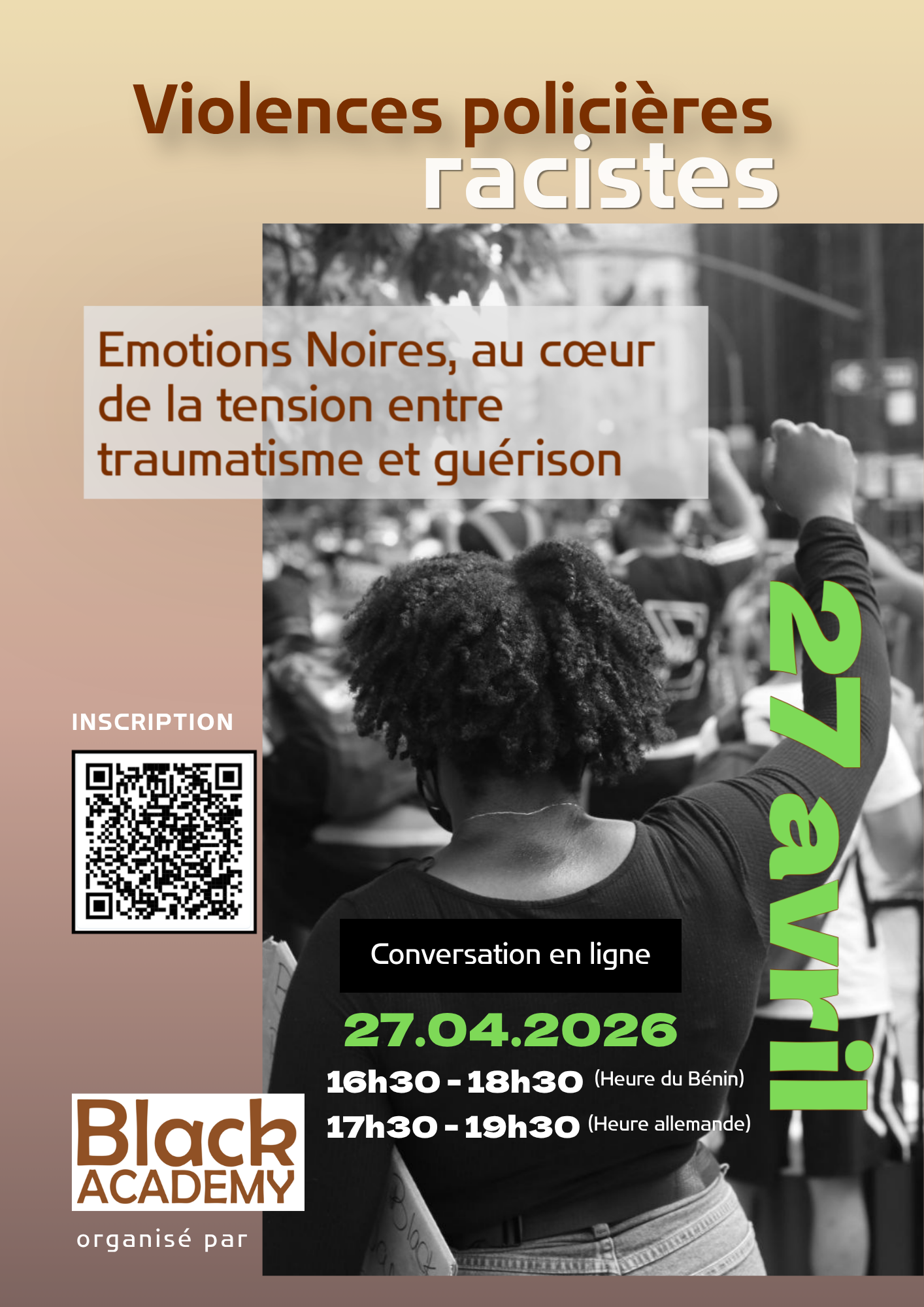 Nos expert·es invité·es échangeront sur la violence policière structurelle, l’accompagnement des traumatismes, le Black Healing et la libération noire.